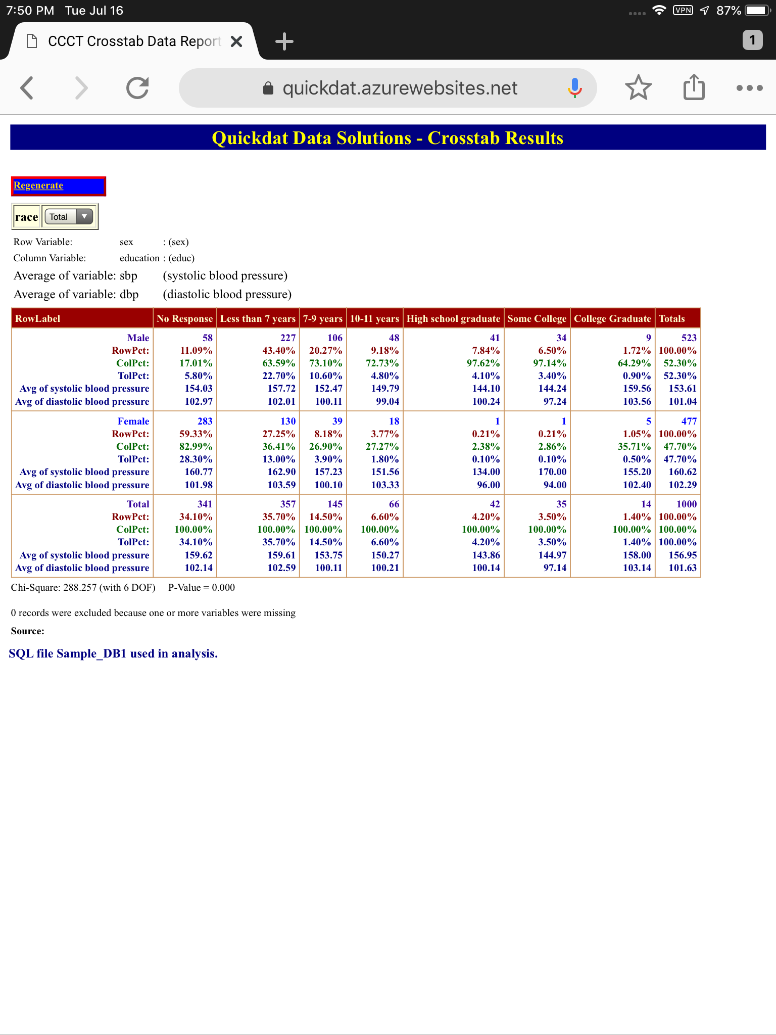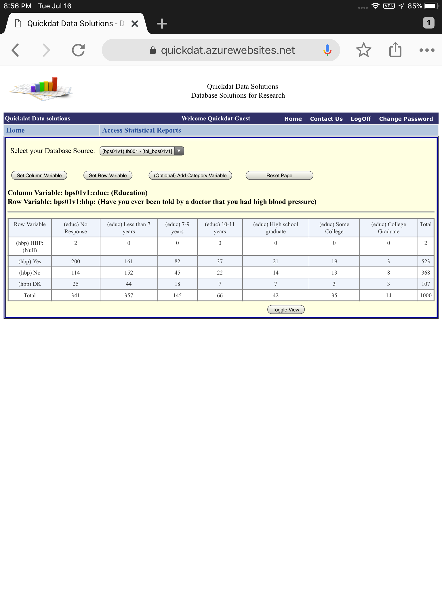Quick Crosstab