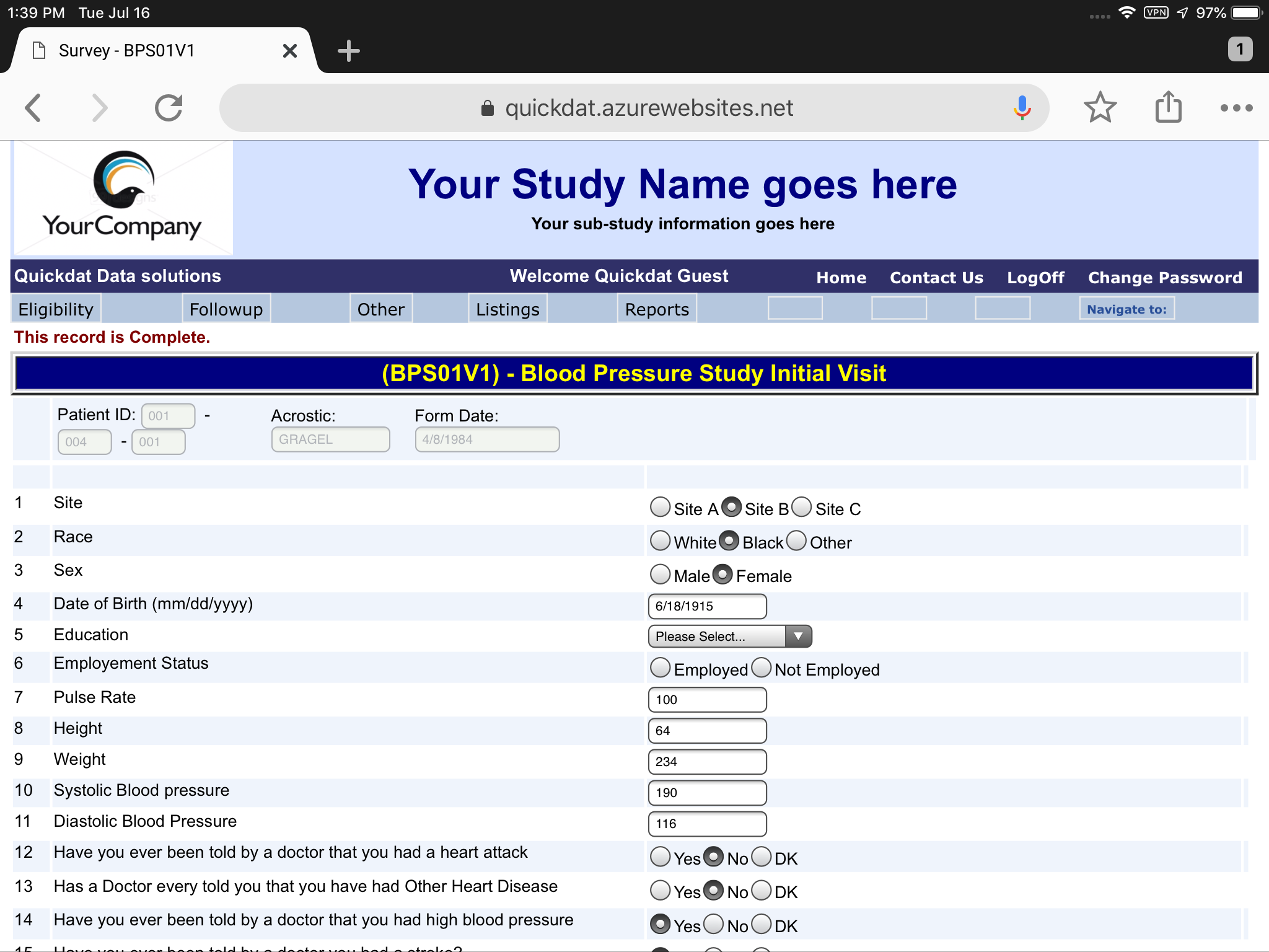 Example of Data Entry